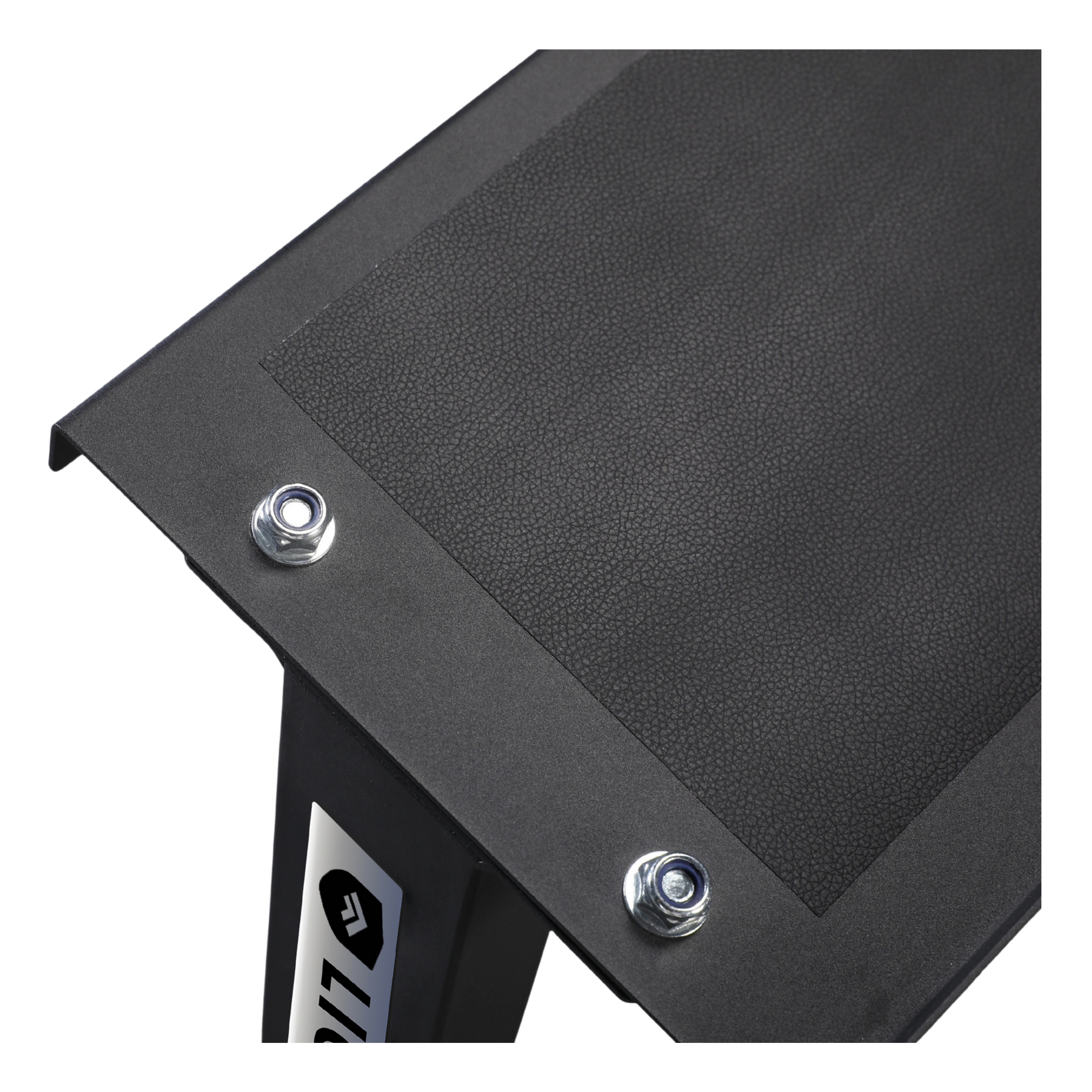 Finish: Fine-textured matte black powder coat, anti-slip top surface