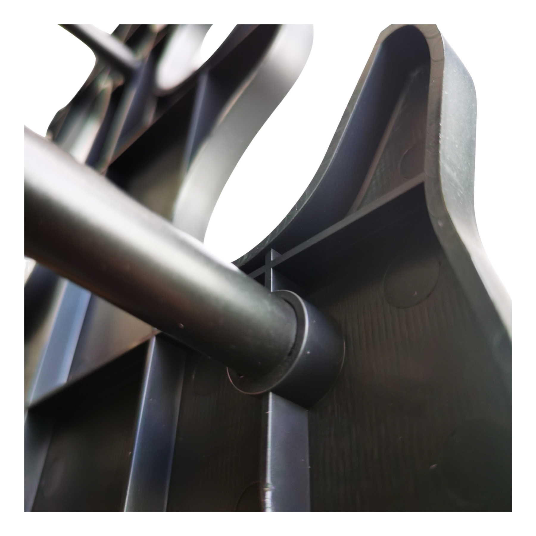 Unlike hollow or low-density plastic racks commonly seen in entry-level products, the Shadow Series is reinforced for stability. The interlocking panels form a unified frame with a low centre of gravity, reducing torsion and ensuring consistent balance on flat surfaces. The matte, fine-grain surface resists scuffing, moisture, and UV exposure. Colour is integrated at the material level to eliminate the risk of peeling or fading over time.