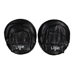 Introducing the Artemis Round Focus Mitt Pair is crafted for professional athletes, meeting the rigorous demands of elite training. This black mitt, featuring the secondary Ligum Fight Gear logo at its center, reflects the brand's dedication to high performance.