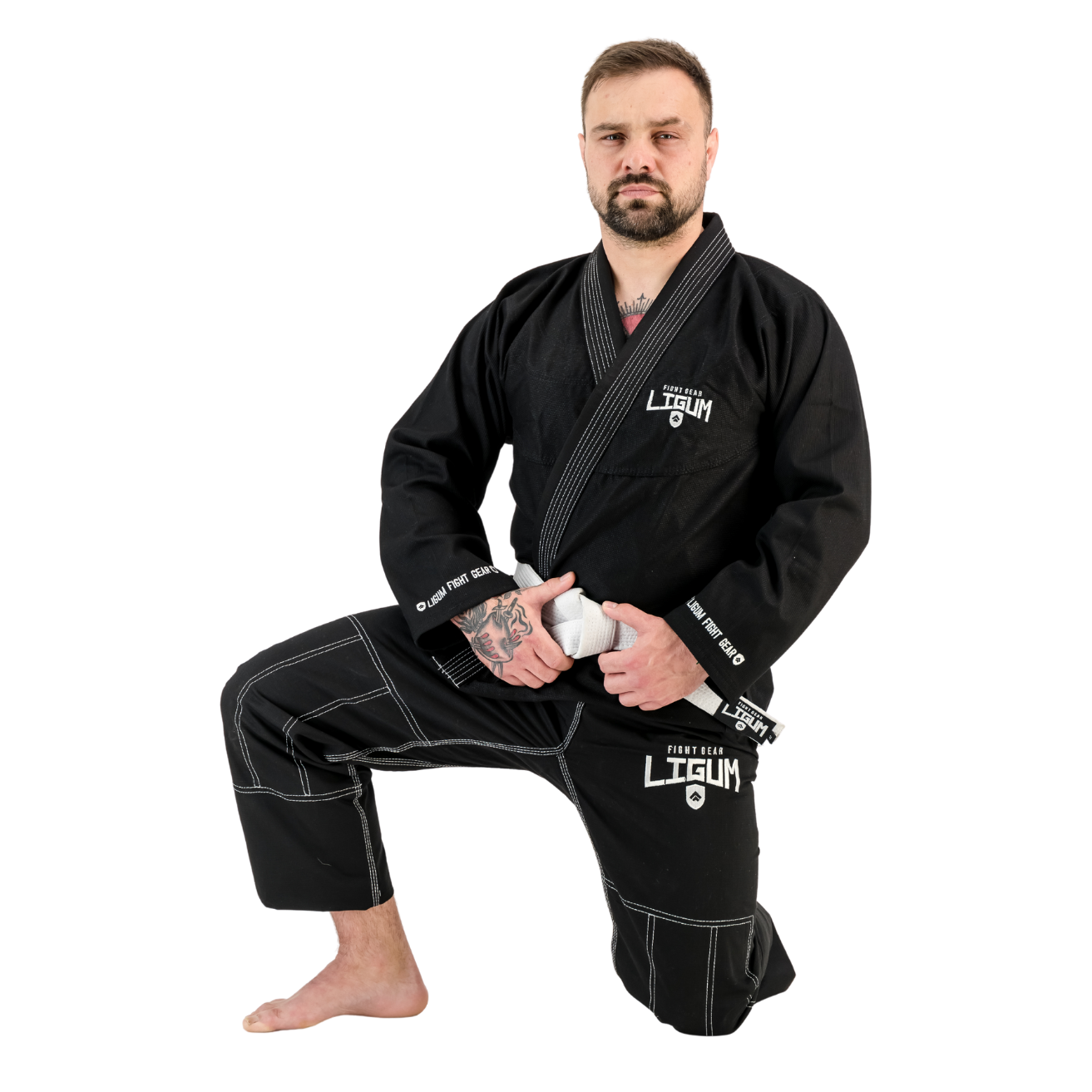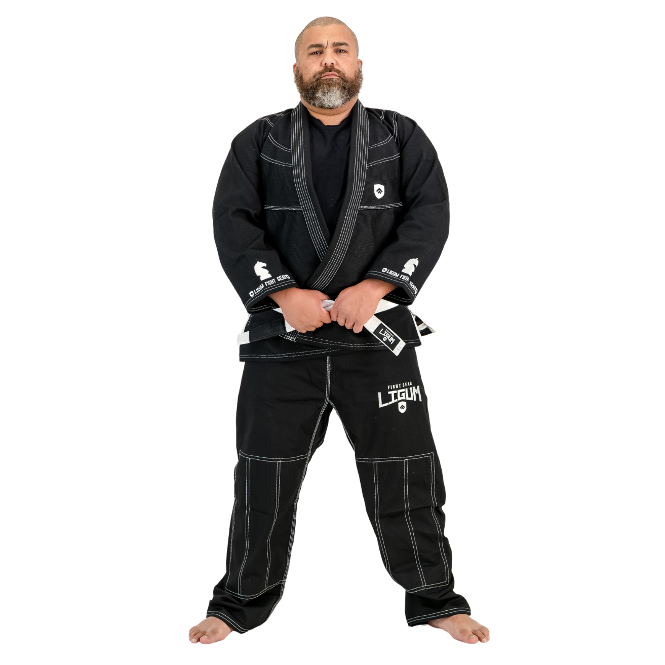 The 450GSM Black Jiu Jitsu Gi - Grappling - Competition Grade by Ligum Fight Gear is designed for BJJ and MMA athletes who demand performance and durability. Made from 450GSM pearl-weave 100% cotton, it offers a perfect balance of strength and breathability, ideal for both training and competition. With reinforced triple-stitched seams and knee padding, the Gi is built to withstand intense grappling, while the stiffened ripstop cotton collar resists wear, minimizes sweat absorption, and reduces bacterial buildup. The pre-shrunk fabric ensures a consistent fit, and the matching drawstring pants provide a secure, adjustable fit. Tested and trusted by professionals, this Gi meets the demands of high-level training and competition. Available in sizes A1, A2, A3, and A4. Belt sold separately.