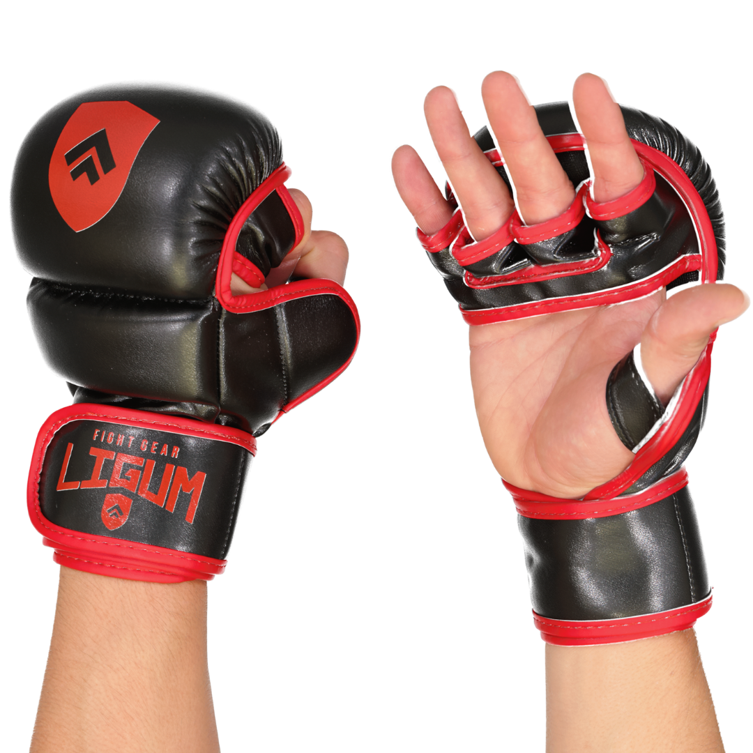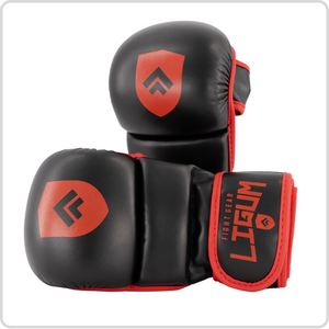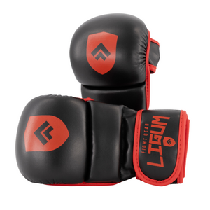Our Ligum Fight Gear MMA Gloves are made from high quality synthetic leather. These gloves should not be used for heavy bag work and are ideal for light to medium sparring, grappling, take downs, ground and pound, BJJ, wrestling, MMA Sparring and light to medium bag work.