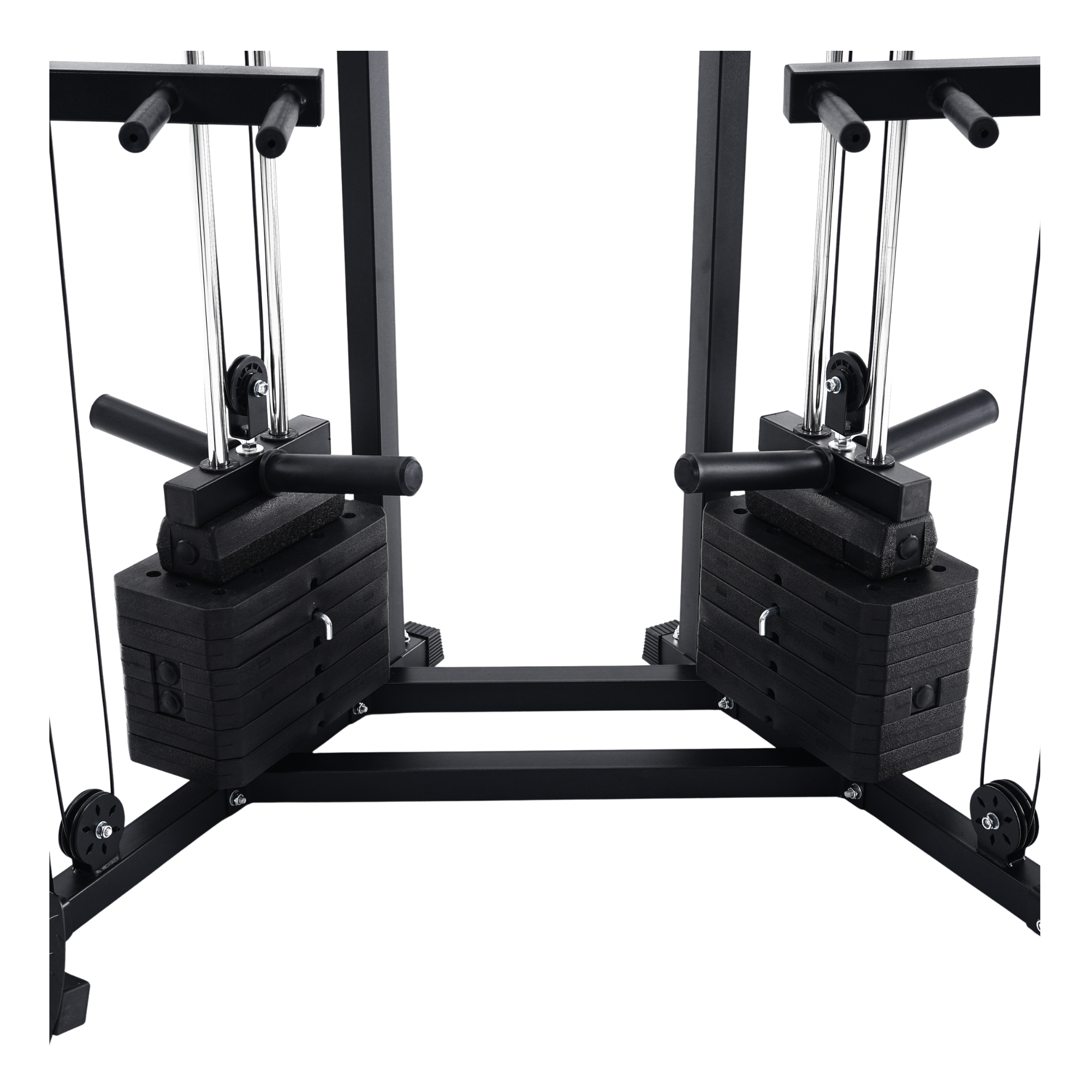 This dual-stack functional trainer is designed to support both unilateral and bilateral movement with a 4:1 resistance ratio per side. Each weight stack is independently operated and calibrated to 33kg, using aircraft-grade, PVC-coated steel cables* for extended travel and lower starting inertia. Movement quality remains smooth, balanced, and repeatable, making it ideal for structured strength training, athletic development, and long-term progression.