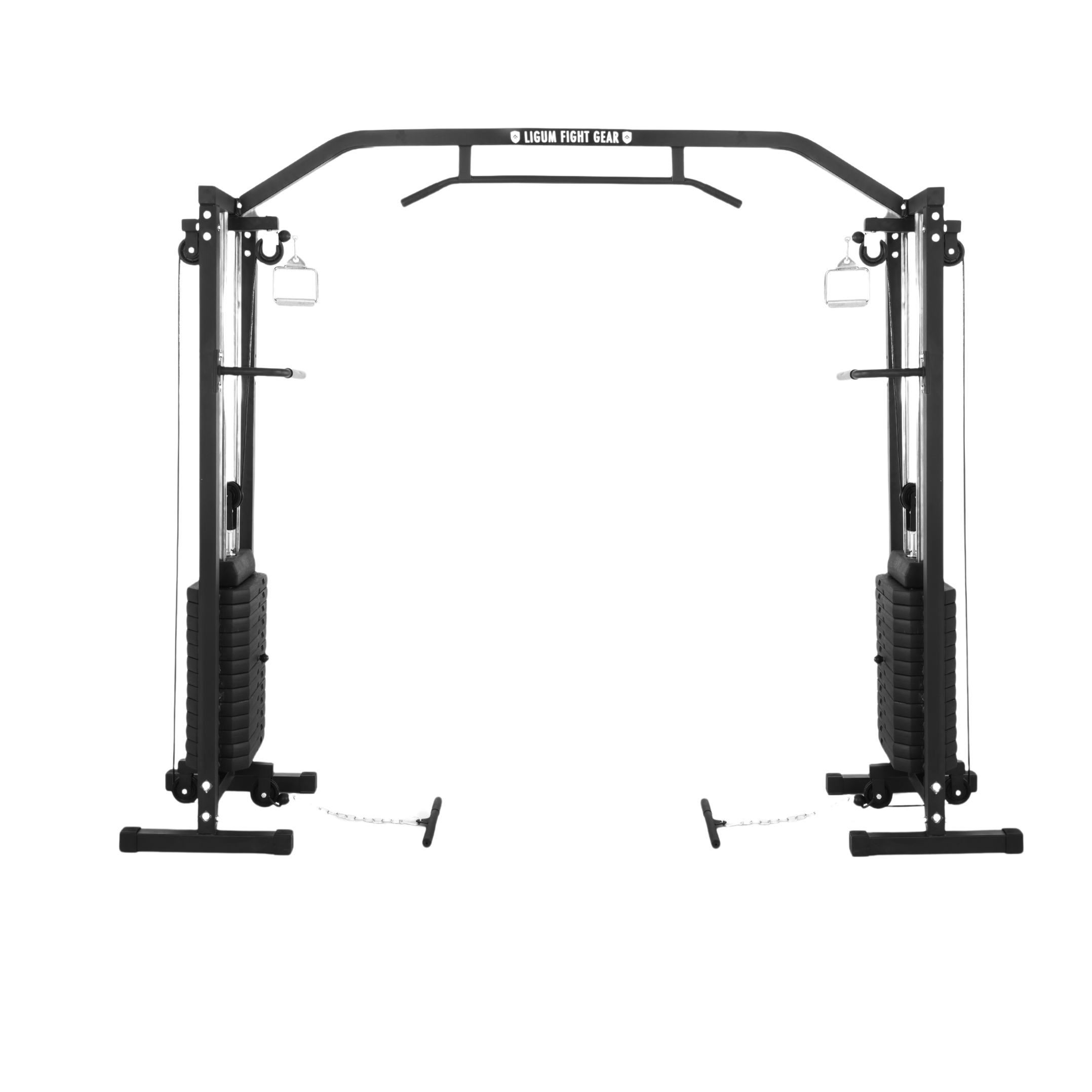 The Commercial Multifunctional Cross Cable Station by Ligum Fight Gear is engineered to enhance upper body strength and precision through controlled, targeted movements. Built with professional-grade materials, it supports a range of exercises including cable crossovers, curls, rowing, and rope pulls. Featuring two cable towers with upper and lower pulleys, each equipped with 77kg of weight plates, it allows for quick weight adjustments via a plug-in coupling system.