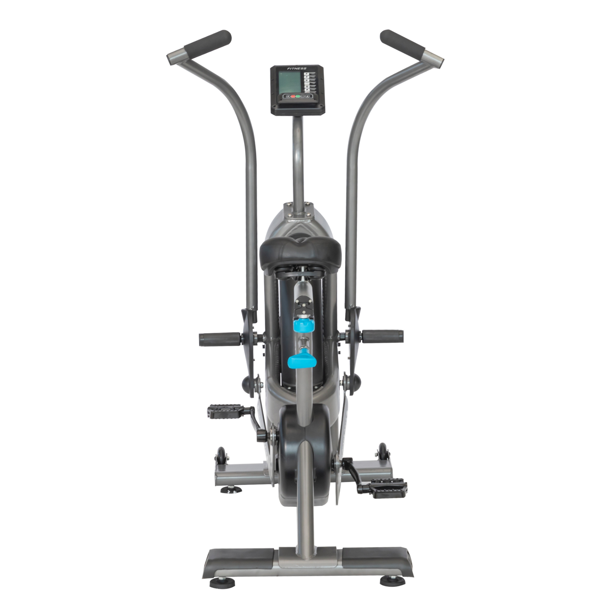 Every inch of this machine is made to endure high-output use. Its high-tensile steel frame is fully welded and finished with corrosion-resistant powder coating. A multi-adjustable saddle ensures correct biomechanics. Four leveling feet stabilise the unit on uneven flooring, while rear-mounted transport wheels offer ease between sessions. A built-in fan shroud reduces wind blowback during longer efforts.